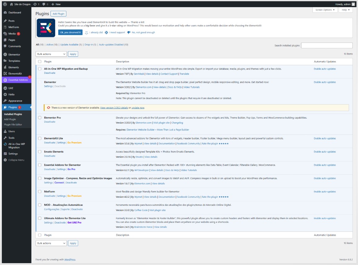 Tenho instalados os seguintes plugins (ver imagem)